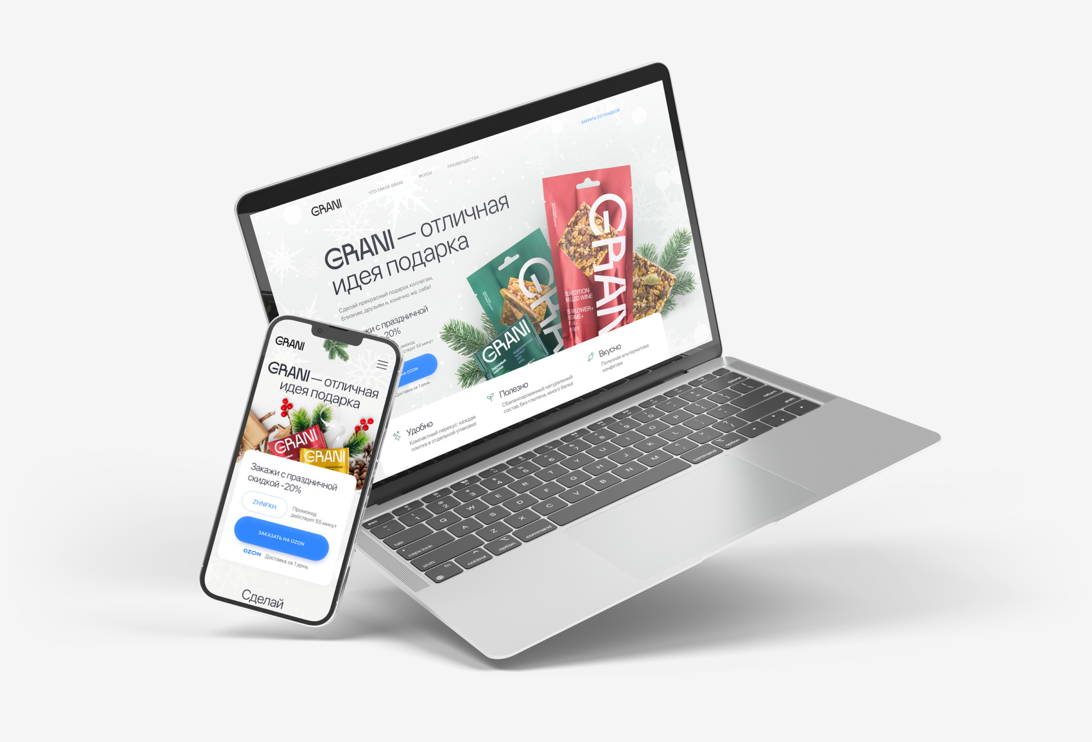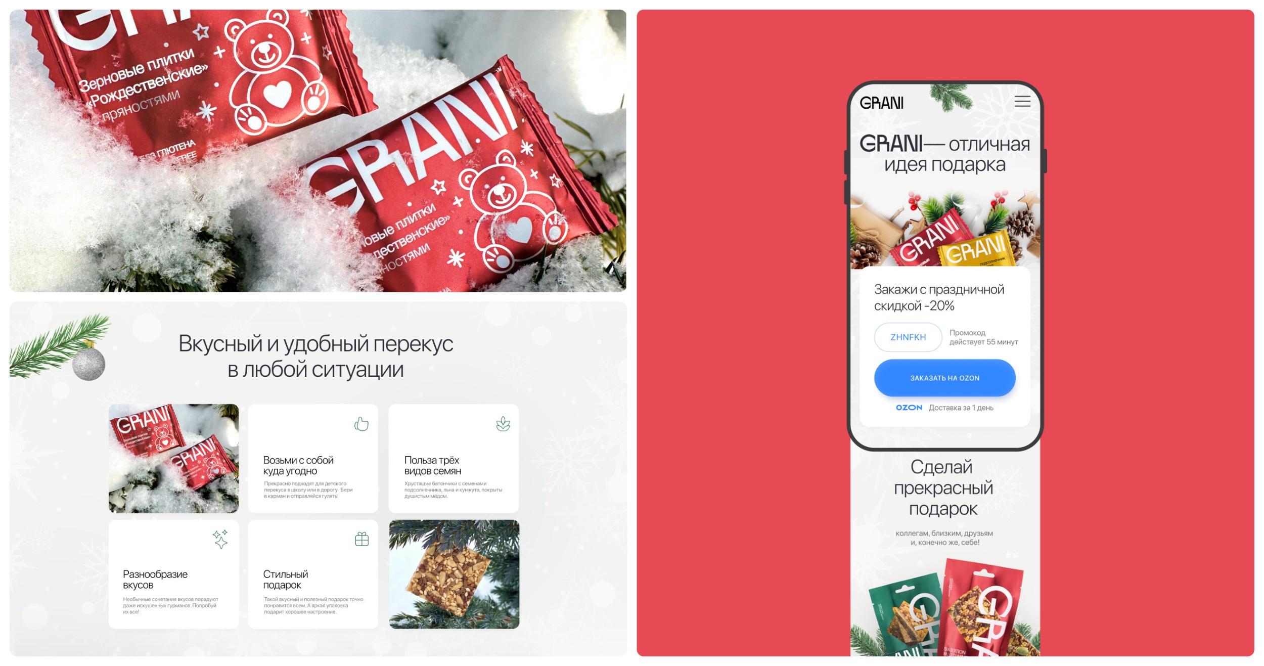 Разработать дизайн посадочной страницы для оригинальных снэков GRANI, который поможет: