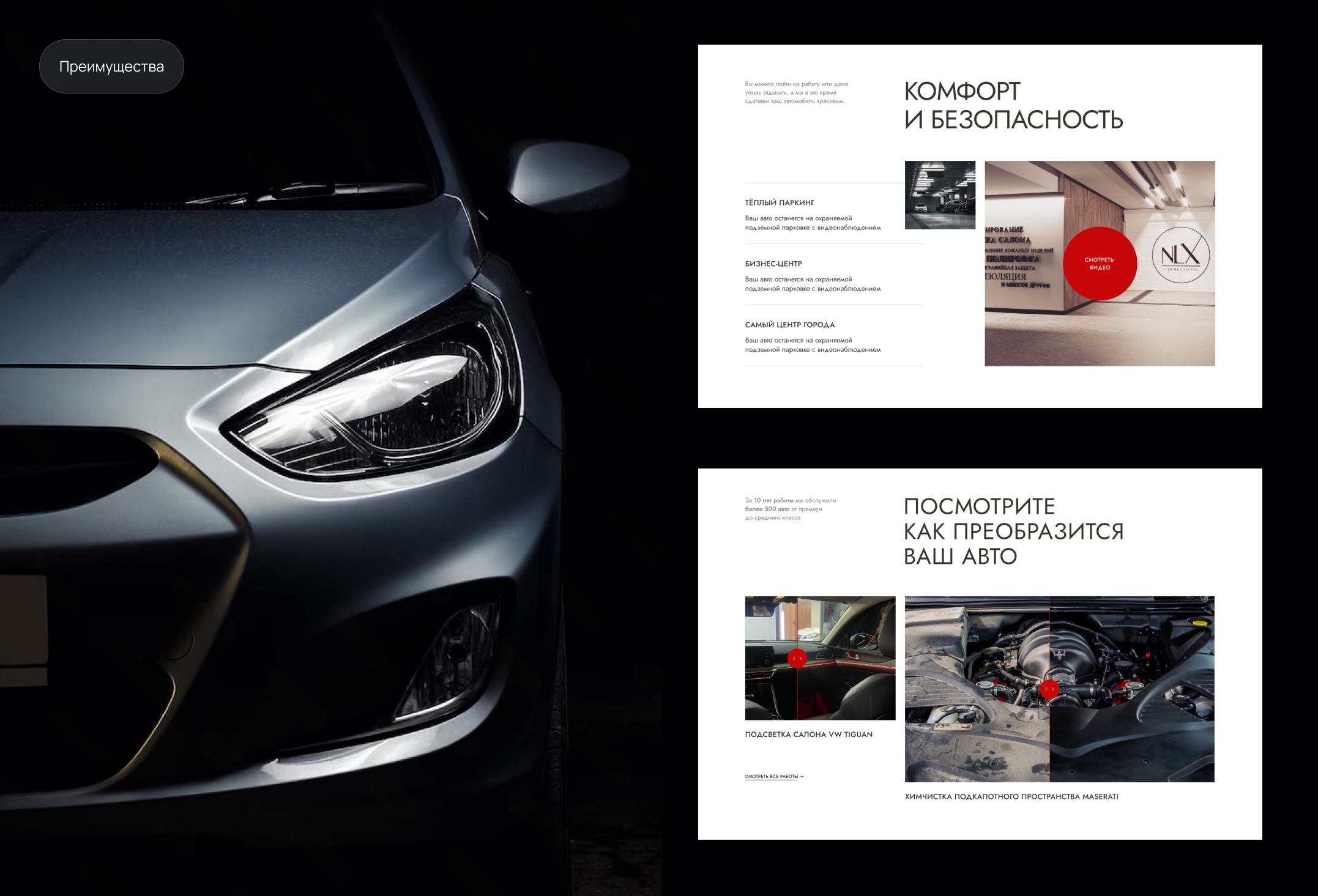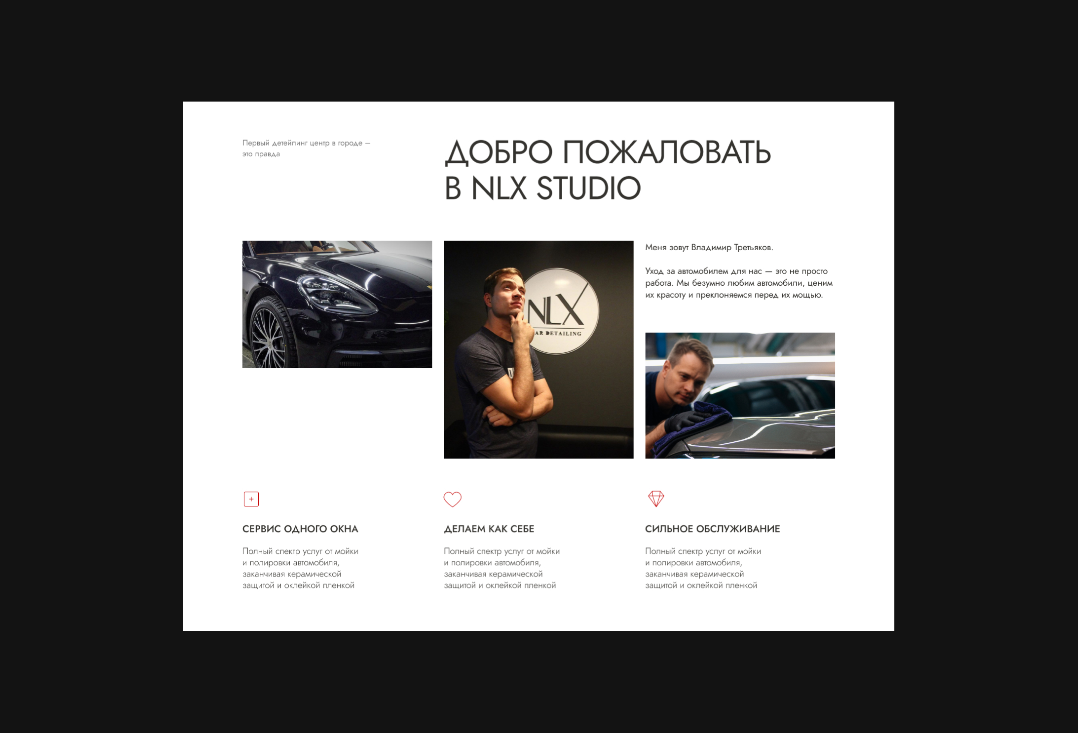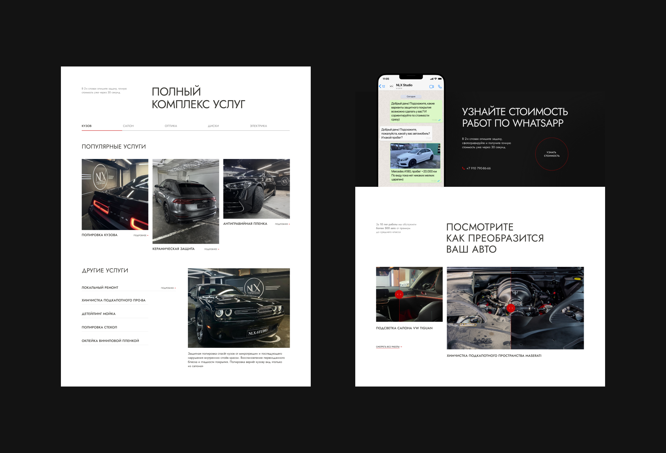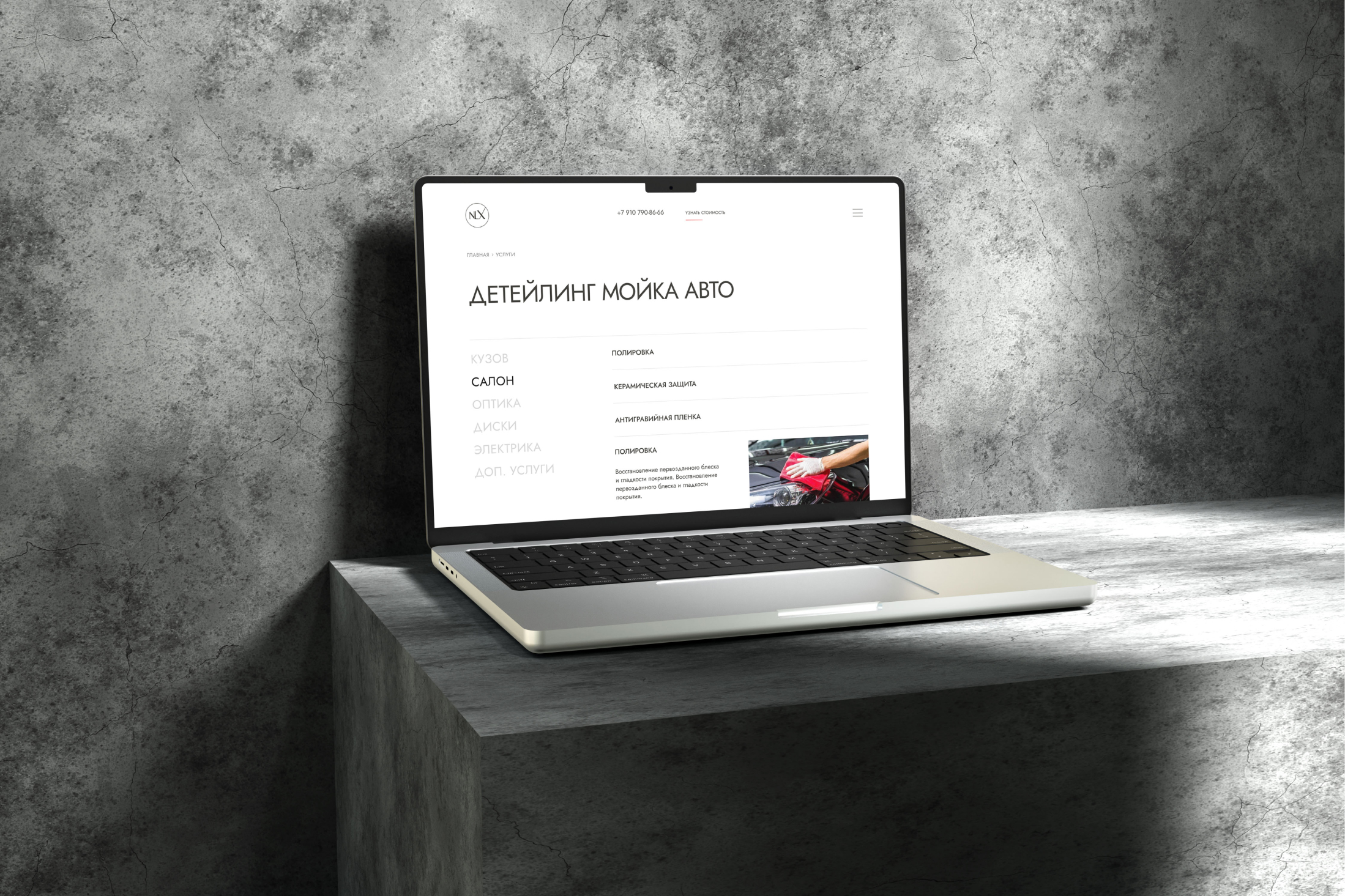 Предыдущий дизайн был нерелевантен статусу бренда NLX Studio: компания создает настоящие шедевры, преобразую внешний вид, в том числе, автомобилей премиум-класса, а их сайт при этом сильно устарел в графическом смысле и не может передать весь масштаб и красоту реализуемых в студии проектов. Поэтому перед нами поставили ряд задач: